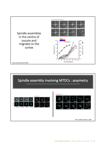Spindle assembles in the centre of oocyte and migrates to the cortex Wu et al Nat Commun 2018 Spindle assembly involving MTOCs : assymetry Wu et al Nat Commun, 2018 46 PRECONGRESS COURSE 02 I VIENNA, AUSTRIA – 23 JUNE 2019 49