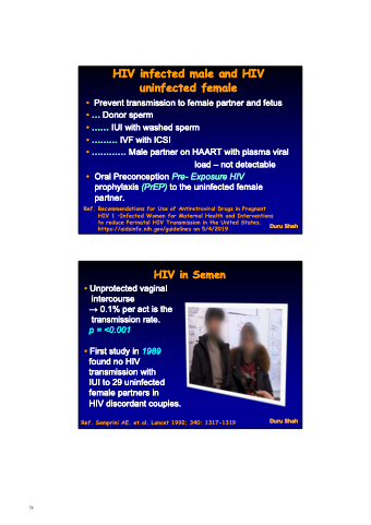 • Prevent transmission to female partner and fetus • ... Donor sperm