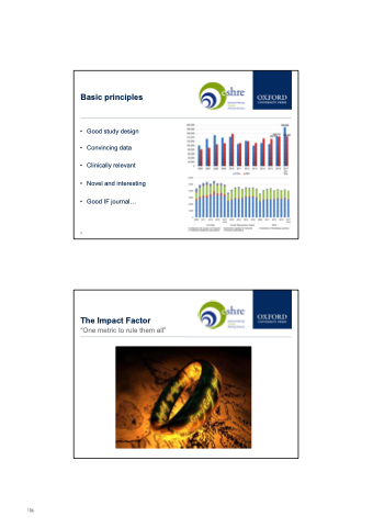Basic principles • Good study design • Convincing data • Clinically relevant • Novel and interesting • Good IF journal... 5 The Impact Factor “One metric to rule them all” 106 103