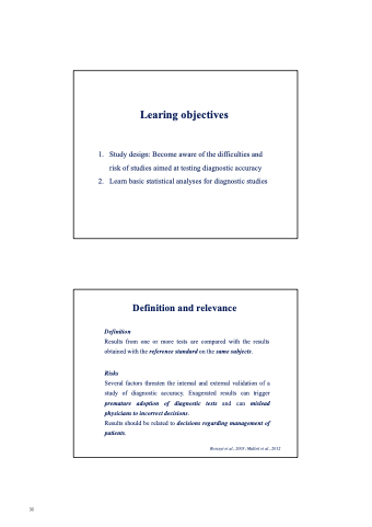 1. Study design: Become aware of the difficulties and risk of studies aimed at testing diagnostic accuracy